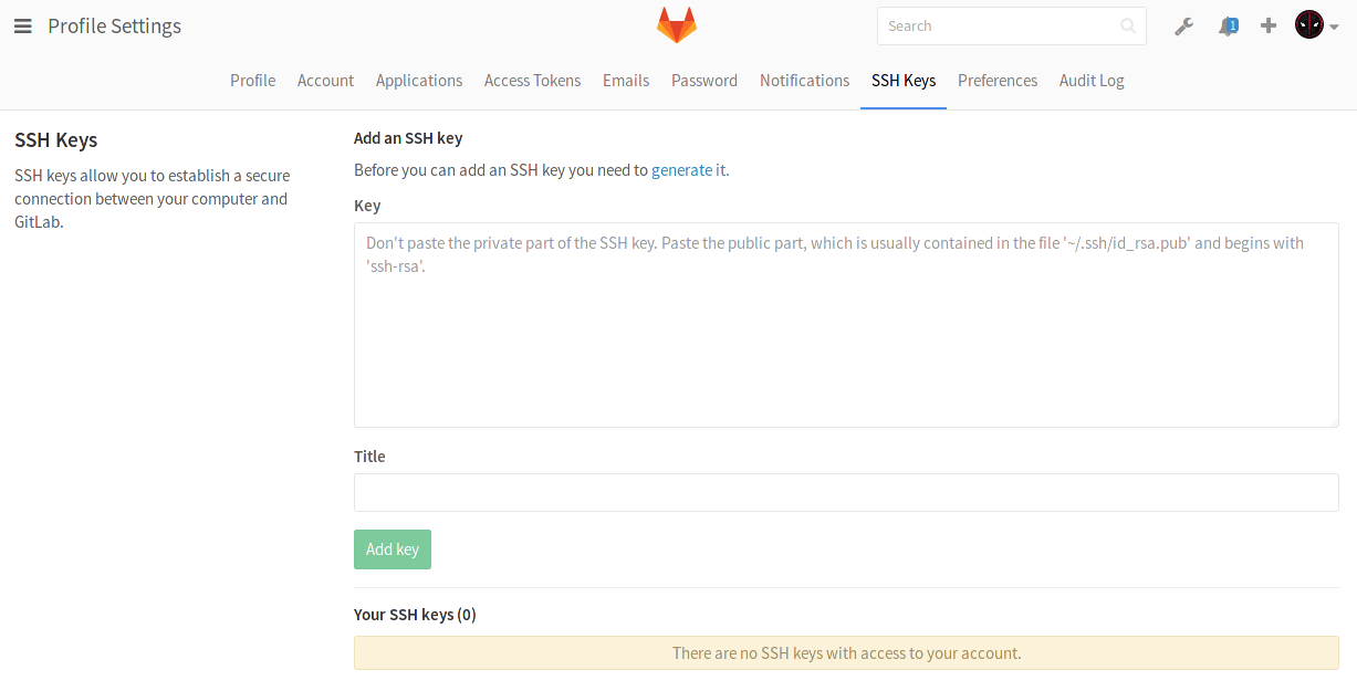 Navigate to the SSH keys tab.